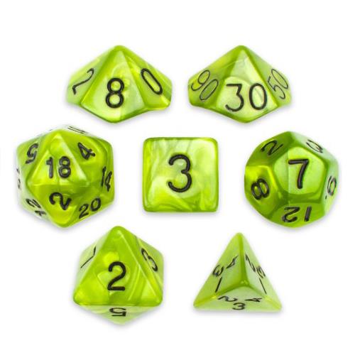 7 Die Polyhedral Set in Velvet Pouch, Swamp Ooze