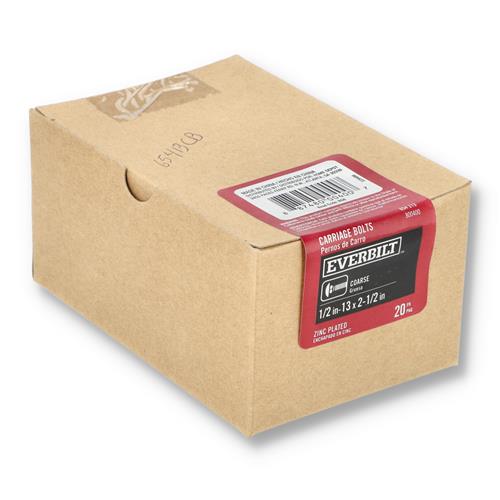 CROWN 20PK 2-1/2'' CARRIAGE BOLTS COARSE 1/2x13 ZINC PLATED