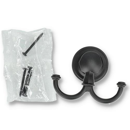 Wholesale CROWN 3PK DOUBLE ROBE HOOK WITH HARDWARE BLACK