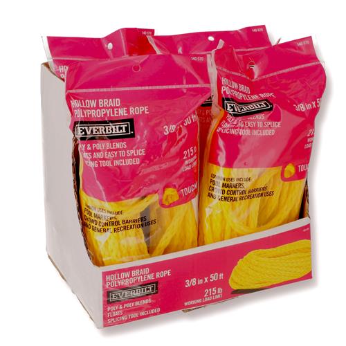 Wholesale EVERBILT 50'x3/8'' YELLOW HOLLOW BRAID POLY ROPE