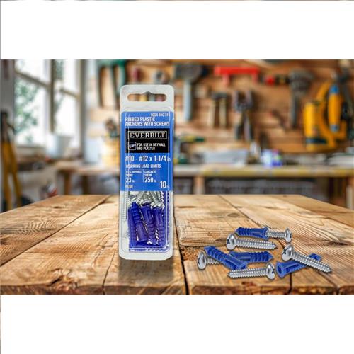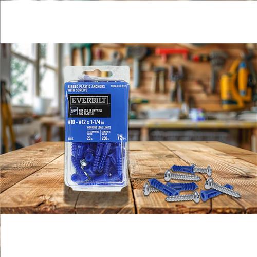 EVERBILT 75PK RIBBED PLASTIC ANCHORS WITH SCREWS #10-#12x1-1/4''